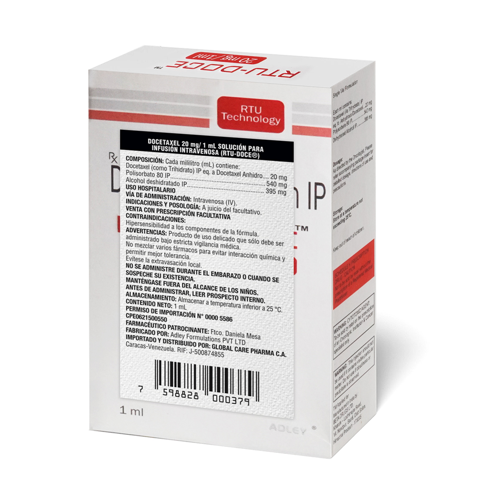Global CareONCOLÓGICODocetaxel RTU 20 mg/1ml Solución para infusión$1.00 Quantity Add to cart Related products Global CareONCOLÓGICOLenalidomida 10 mg Cápsulas $1.00 Global CareONCOLÓGICOOxaliplatino 50 mg/25 ml Solución para infusión $1.00 Global CareTERAPIA COMPLEMENTARIAEritropoyetina 40.000 IU/ML Solución Inyectable en jeringa prellenada $1.00